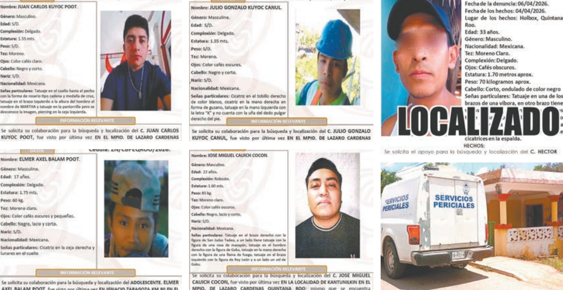Autoridades confirmaron la desactivación de la ficha de búsqueda de Héctor Joaquín N., de 33 años, quien fue reportado como desaparecido el pasado 4 de abril en la isla Holbox, municipio de Lázaro Cárdenas. Ciudadanos exigieron a la Fiscalía General del Estado (FGE) que presente resultados de las investigaciones y atienda la crisis de desapariciones que afecta al norte de Quintana Roo.
