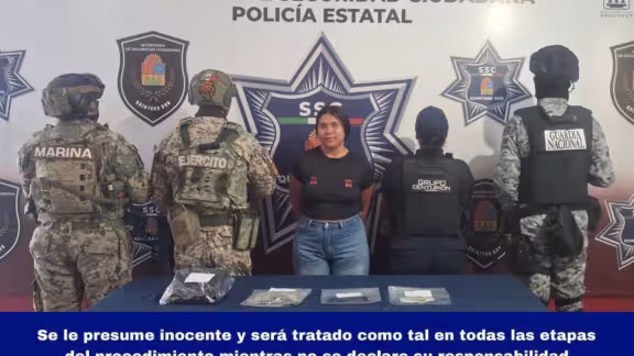 En un despliegue de fuerzas federales y estatales culminó en la captura de una presunta vendedora de droga, Soledad “N” fue interceptada por autoridades de los tres niveles de gobierno cuando manipulaba un cargamento de narcóticos listos para su distribución.