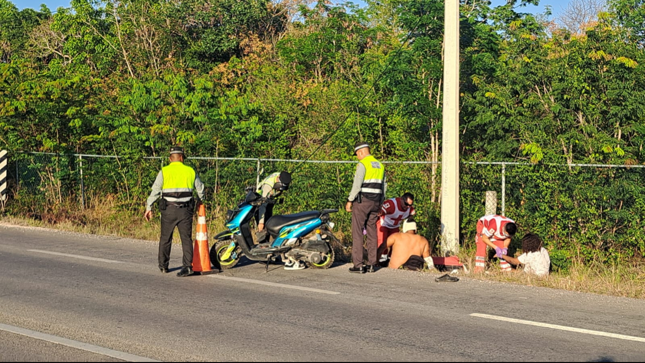 Un hombre y su hija menor de edad resultaron lesionados luego de sufrir un accidente mientras circulaban a bordo de una motoneta sobre la carretera Federal 307, en el tramo Tulum–Playa del Carmen, a la altura de la zona conocida como Michelin.