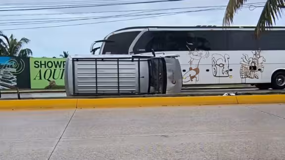 Al momento de intentar frenar para evitar colisionar con otro vehículo las llantas derraparon generando que se impactara contra el camellón central y posteriormente volcara.