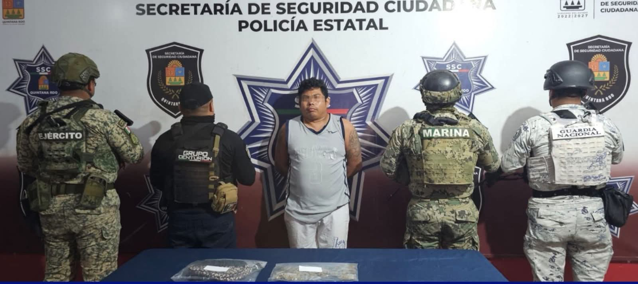 La captura de dicho sujeto se dio a conocer la tarde-noche de este domingo a través de un comunicado y realizado en Holbox en el municipio de Lázaro Cárdenas, como parte de las estrategias de vigilancia para combatir el narcomenudeo en las zonas turísticas de la entidad.