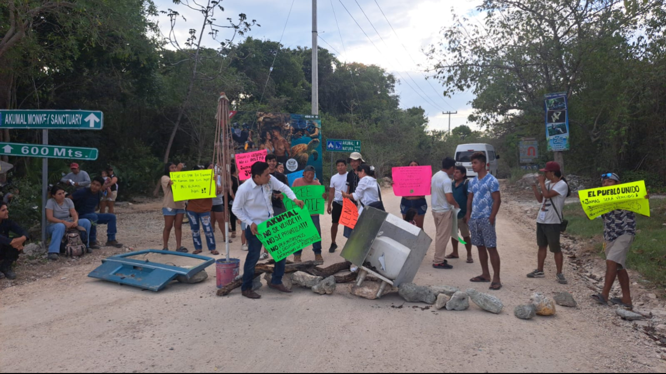 El acceso cerrado conecta con una ruta utilizada por visitantes y prestadores de servicios turísticos que recorren cenotes de la región, por lo que la movilización también impactó momentáneamente la circulación en esta zona cercana a Akumal.