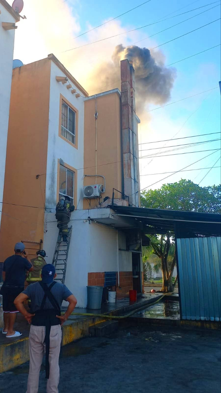Un incendio en un negocio de venta de pollos asados causó alarma entre vecinos del fraccionamiento Villas Otoch Paraíso, en las primeras horas de la mañana de este martes, lo que generó la movilización de elementos del Cuerpo de Bomberos, quienes sofocaron las llamas que se extendieron a lo largo del tubo extractor de humo.