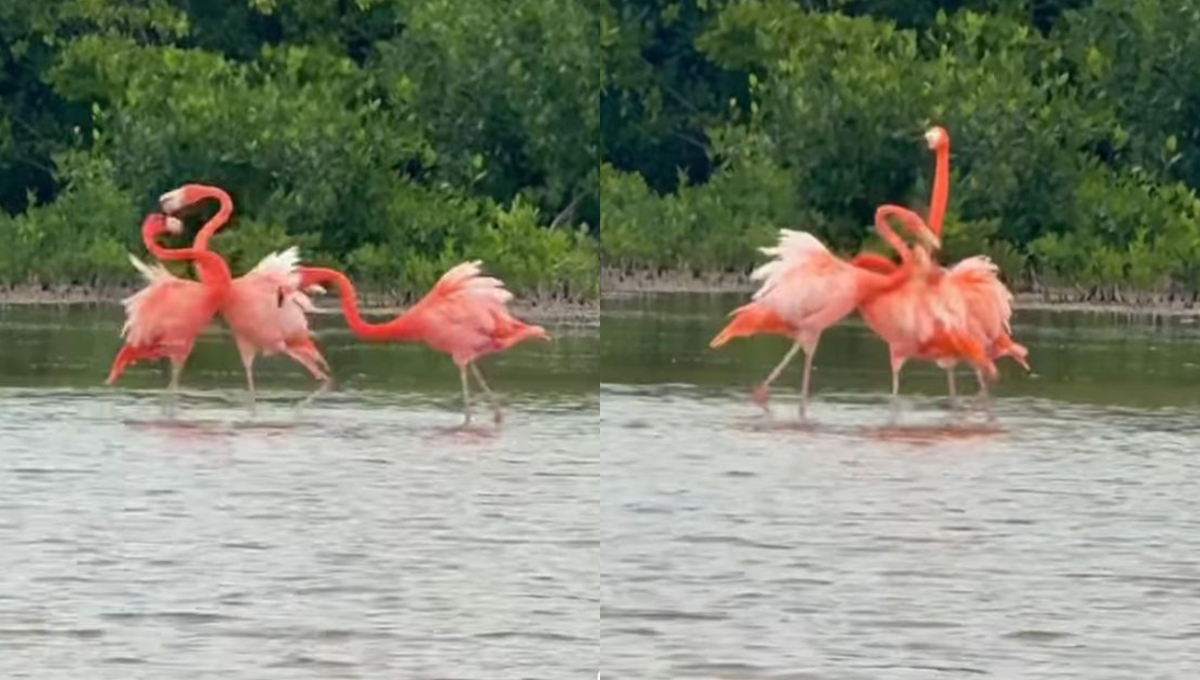 ¡Se dieron con todo! Captan fuerte enfrentamiento entre flamencos en la costa de Yucatán (Video)