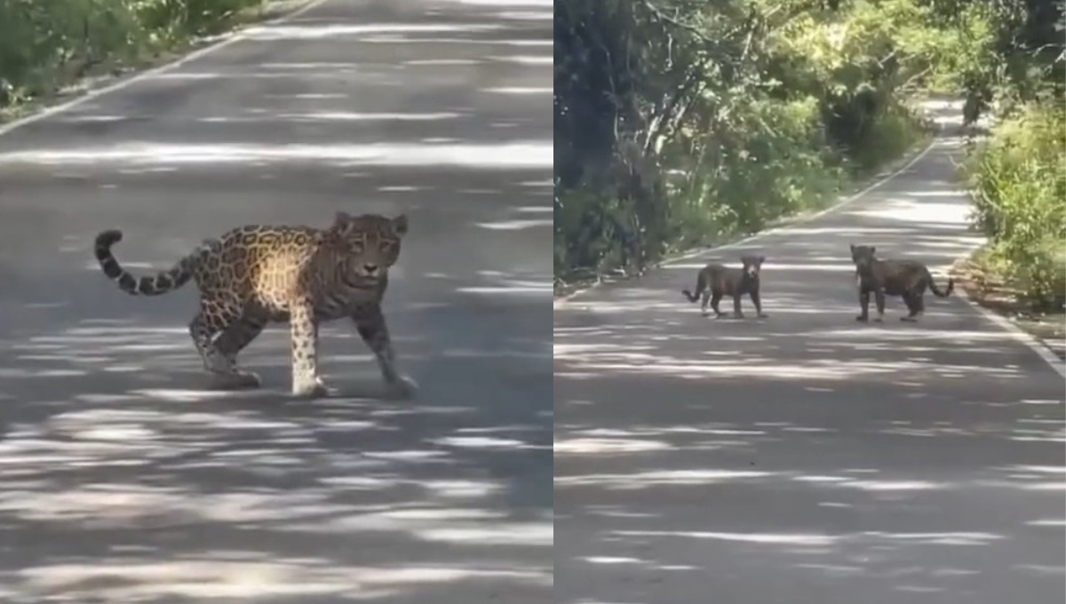 Videos difundidos en redes sociales muestran a felinos caminando y cruzando la carretera dentro de la Reserva de la Biosfera de Calakmul, hábitat natural de la especie protegida.