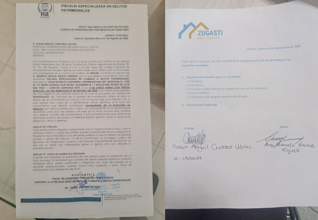 La afectada señala a la presunta red de corrupción entre notaría, banco y abogados.