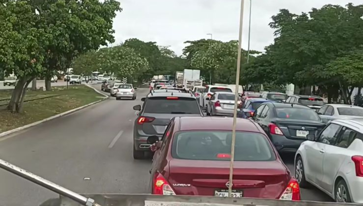 Una enorme fila de vehículos sobre la calle 60 norte, generó molestia en un automovilista de la capital yucateca, quien protagonizó un cómico momento.