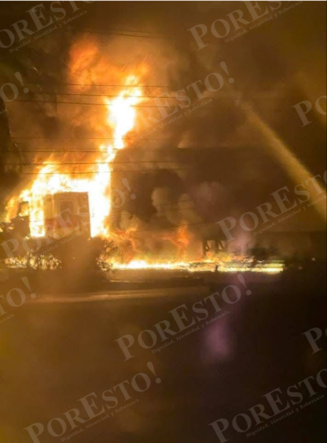 Del fuerte impacto la pesada unidad se salió de la carpeta asfáltica adentrándose en un área verde, dónde comenzó a incendiarse.
