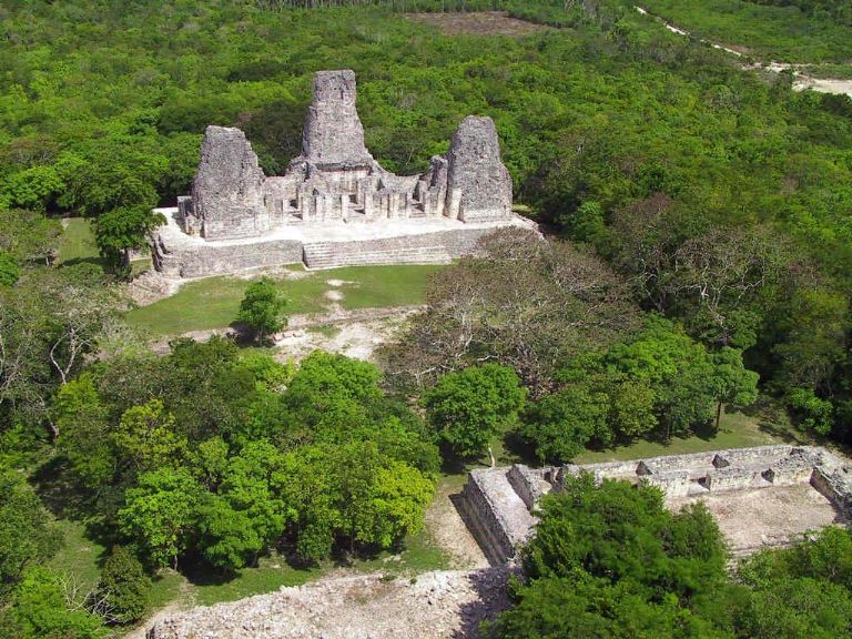 Este yacimiento arqueológico de la cultura maya está ubicado en el municipio de Calakmul, a 23 kilómetros al suroeste del poblado de Xpuhil. Cuenta con un edificio dividido en tres secciones. La puerta principal asemeja una boca abierta que simbólicamente representa el límite entre el mundo de los vivos y el inframundo maya.
