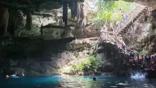 La experiencia para descender al cenote Tsukán, incluye un recorrido que se inicia con una espectacular escalera y acceso que permite ver la unión entre la superficie y el mundo subterráneo.