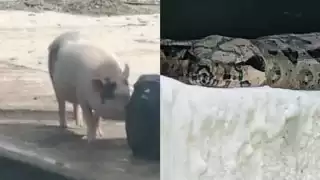 Un cerdito y una serpiente pasean por Las Américas en Mérida