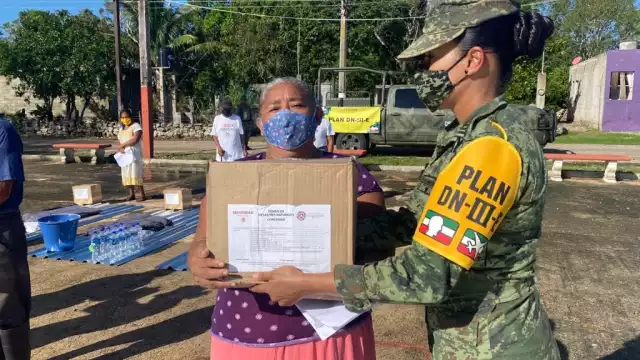 La Secretaría de la Defensa Nacional, a través de la X Región Militar y la 32/a. Zona Militar, informaron a la población en general que elementos del Ejército y Fuerza Aérea Mexicanos en el marco de la aplicación del Plan DN-III-E en su Fase de Recuperación, se encuentran realizando la distribución de insumos del Fondo de Desastres Naturales (FONDEN), a familias que resultaron afectadas por el paso del Huracán Delta, a las cuales se les entrega despensas, agua embotellada, láminas, cobertores, kits de limpieza y kits de higiene personal, entre otros artículos, beneficiando a 372 pobladores de las localidades de Dzonot Tigre, X-Makulam y Kalax Yodzonot, perteneciente al municipio de Tizimín.