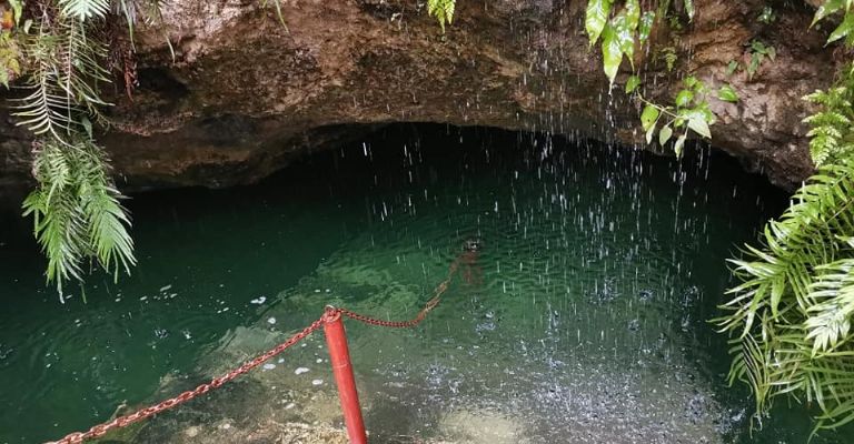 El lugar se está convirtiendo en un punto de encuentro para decenas de visitantes provenientes de muchas partes, pues ante las recientes lluvias causadas por tormentas tropicales y huracanes, el agua ya alcanzó los 15 escalones de 30 que dan acceso a esta cueva histórica.