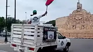 El Frente Nacional (Frena) en Yucatán se manifestó frente al Monumento a la Patria con motivo de solicitar a la población a disminuir los ingresos del Gobierno Federal, conocido como la 4T, exhortan a utilizar efectivo, minimizar el uso de tarjetas y transacciones, comprar en tianguis o pequeños comercios, evitar compras no necesarias, así como a evitar pagos a través del celular.