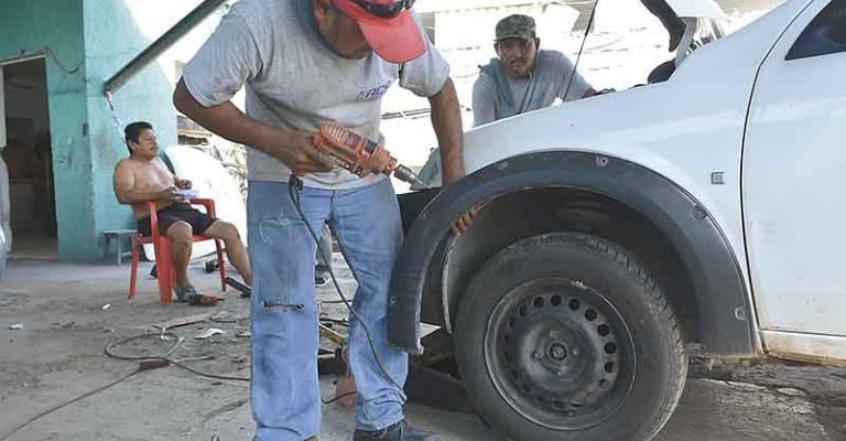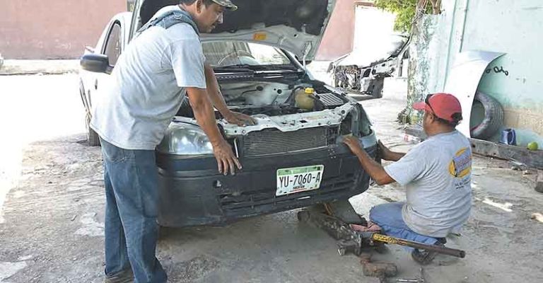 Uno de los ayudantes del taller, Bacab Fuentes, comentó sus comienzos en este trabajo. Cuando apenas tenía 17 años trabajó como ayudante en varios talleres, sitios donde refinó y aprendió lo necesario para poder sacar adelante su talento, cuando consideró que ya contaba con la suficiente experiencia decidió trabajar en una agencia distribuidora de automóviles, donde permaneció por cerca de seis años, posterior a esto viajó en ocasiones a Cancún con Alfonso Zapata, cada semana o cada quince días, comentó mientras continuaba lijando el golpe de un guardafangos; gracias a sus buena labor, cuenta con una lista de clientes de confianza, quien comenta, son los que lo recomiendan y le permiten tener un flujo de ingresos constante.