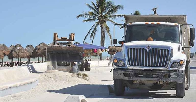 Los servidores públicos utilizaron palas y un mini trascabo para depositar la arena en el volquete: “mínimo el camión se llena por lo menos tres veces, lo que equivale a más de treinta y cinco metros cúbicos de arena; mientras que con el sargazo tenemos que llenar y regresar unas seis o siete veces”, añadió.