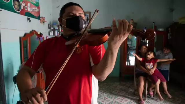 Sabido Chávez tiene 32 años de edad y desde los 15 toca el violín. Ayer estaba ensayando en su casa cuando lo visitaron los reporteros, y comentó que ante la falta de trabajo acordó con los demás miembros del grupo grabar una canción y subirlo a las redes sociales como una manera de promocionarse para ver si de alguna manera alguien los puede contratar..