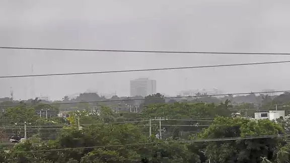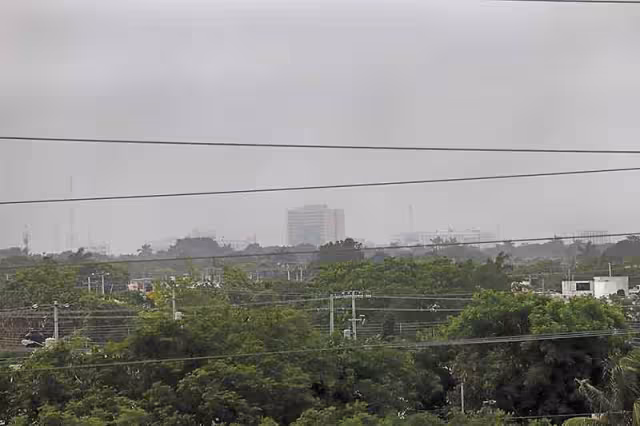 La administración del hotel El Conquistador permitió a los reporteros de POR ESTO! subir a su mirador para observar el cielo de Mérida y a los lejos se podía ver la bruma que cubría los edificios de mayor envergadura de la capital. Hacia los 4 puntos cardinales la escena era la misma, la de un cielo grisáceo y denso.