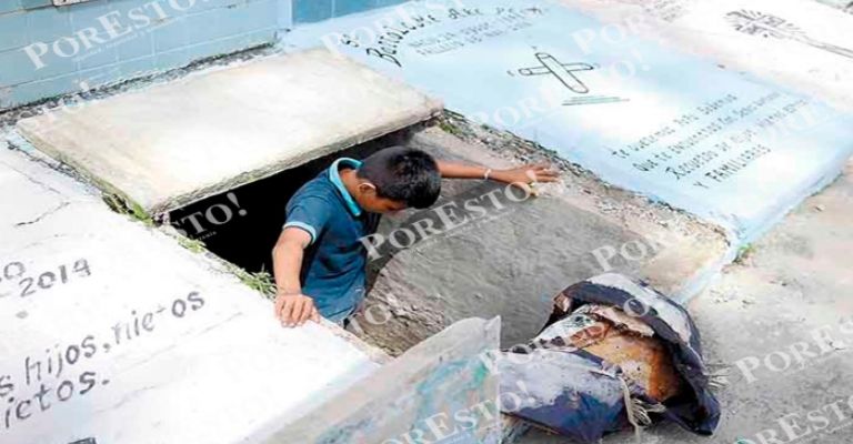 El niño, que gusta de cantar Hip-hop, asegura que no tiene miedo al realizar la labor generalmente desempeñada por adultos. Lo único que no le gusta, dice entrevistado en el mismo camposanto, es “sacar los huesitos”.