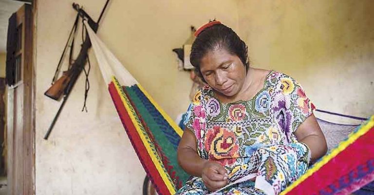 Explicó que la técnica del “xocbichuy” (hilo contado) se la enseñó su mamá y su mamá a la vez recibió el conocimiento de su abuela, de tal manera que esa sabiduría se ha transferido por generación en generación.