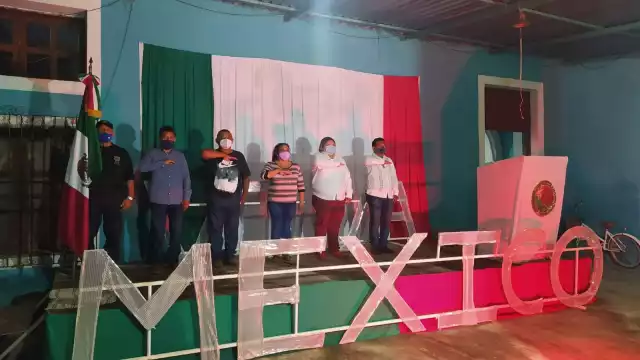 En Muxupip se llevó a cabo a puertas cerradas el Grito de Independencia, en el área de la Policía Municipal, solo con la participación de los integrantes del Cabildo, meintras que el evento se transmitió por Facebook.