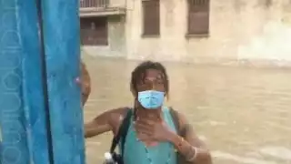 El paradero de la Ruta 199, ubicado en la Calle 73 x 62, se inundó y los usuarios que pretendían abordar las unidades tuvieron que esperar con el agua hasta los tobillos.