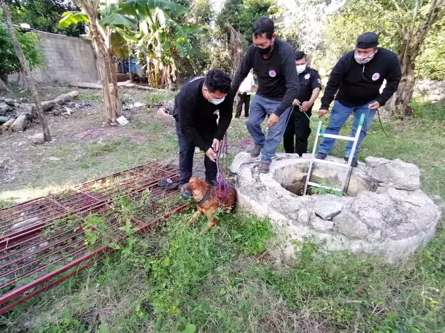 Rescatan a un perro que cayó a un pozo de 8 metros de profundidad en Motul
