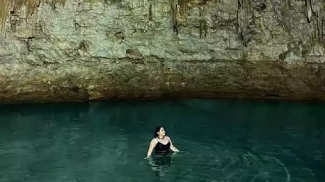 La tirolesa extrema más alta en el cenote azul de Campeche