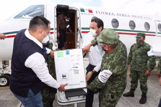 Las vacunas llegaron en una aeronave Gulfstream G150 matrícula 3814 de las Fuerzas Armadas proveniente de la Ciudad de México, y fueron recibidas por el secretario de Salud, Mauricio Sauri Vivas.