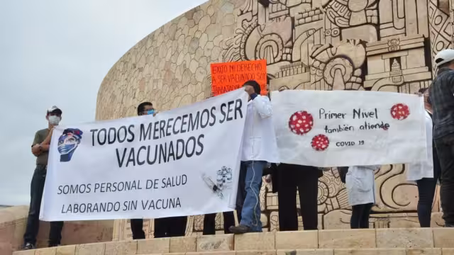 Personal de salud protesta en Mérida; no han sido vacunados contra COVID-19