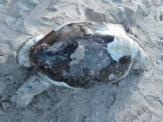 El cuerpo sin vida de esta tortuga fue encontrado en la playa de Chuburná Puerto, comisaría de Progreso, en avanzado estado de descomposición, por lo que se piensa que llevaba varios días en ese lugar.