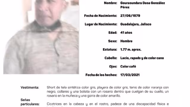 Se trata de Gourasundara González Pérez, quien es originario de Guadalajara, Jalisco. Se precisó que el hombre padece discapacidades físicas e intelectuales.