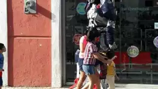 Policías sacan a 'Optimus Prime' del Pueblo Mágico de Valladolid