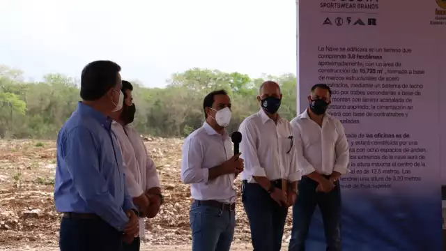 Mauricio Vila Dosal puso en marcha los trabajos de construcción de un edificio que albergará las oficinas corporativas de la firma Augusta Sportswear Brands, así como la fábrica donde se maquilará prendas deportivas bajo un proceso de sublimación, en compañía de empresarios e inversionistas yucatecos, el gobernador.