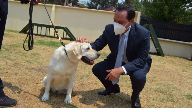 “Hace algunos años conocí a Frida, la valiente perrita de rescate que ayudó a las labores del sismo en la CDMX en 2017. Me dio mucho gusto volver a verla y saludarla de parte de todos los yucatecos”, dijo Vila Dosal.