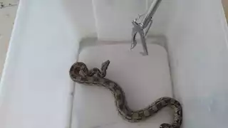 Serpiente atemoriza a una mujer canadiense en Chelem Puerto, Progreso