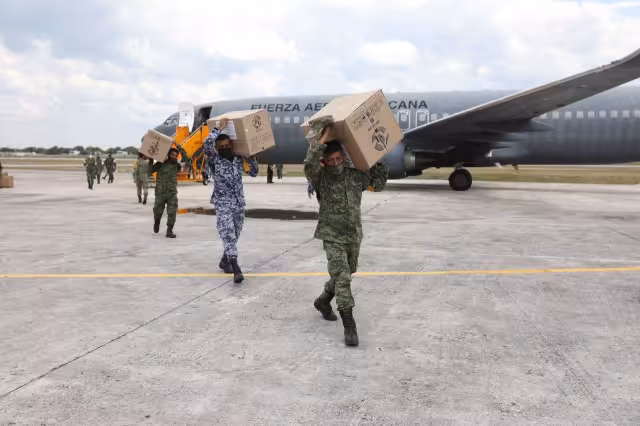 En el arribo de este nuevo cargamento también estuvieron el comandante del Séptimo Batallón de Ingenieros de Combate, Coronel Florentino Ruiz Sánchez; el Teniente Coronel Piloto Aviador Marco Durán García, comandante Accidental de la BAM número 8; y el subdirector de Salud Pública de la SSY, Carlos Isaac Hernández Fuentes.