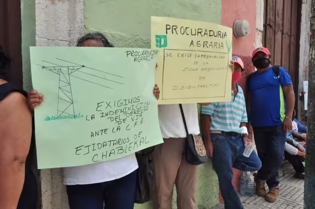 Ejidatarios de la comisaría de Chablekal, ubicada al norte de la capital yucateca, se manifestaron afuera de las instalaciones de la Procuraduría Agraria para exigir una solución sobre el pago que el Gobierno Federal debe realizarles luego de expropiarles 52 hectáreas de terreno, los cuales se utilizaron para habilitar la zona arqueológica de Dzibilchaltún.