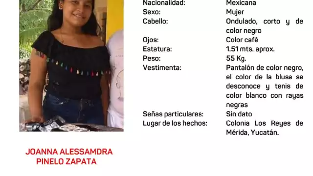 Se trata de Joanna Alessamdra Pinelo Zapata, de 14 años de edad, quien fue vista por última vez en la colonia Los Reyes, al oriente de la capital yucateca.