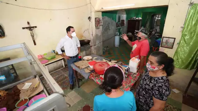 Previo a una visita de supervisión en el Centro de Salud Urbano de la colonia San José en Kanasín, donde se realiza la aplicación de las primeras vacunas contra el Coronavirus para personas de 50 a 59 años, el Gobernador aprovechó para hacer una parada en ese pequeño negocio de antojitos yucatecos.