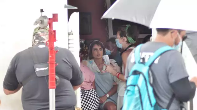 Desde antes de las 10:00 horas, los remolques de producción y camerinos llegaron a la citada dirección, para dar inicio con la grabación de está comedia romántica dirigida por Elisa Miller, misma que estará disponible en la plataforma de streaming a inicios del 2022