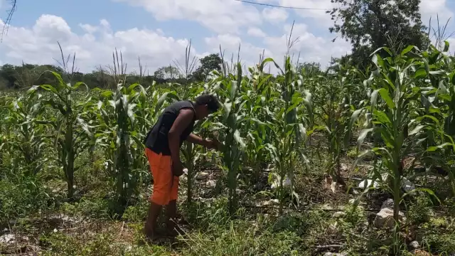 En un terreno de aproximadamente media hectárea a un costado de la carretera entre Hunucmá y Tetiz, en el que se cultiva maíz y calabaza, se encontraban ayer tres jóvenes cavando pocetas para la siembra de maíz y otras hortalizas como la calabaza.