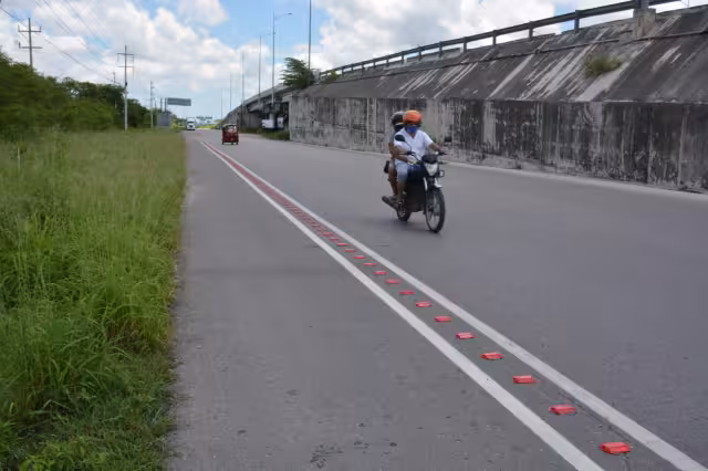 La nueva obra en construcción incluye la delimitación de,  por lo menos, ocho kilómetros del acotamiento de la carretera que va de Mérida a Progreso, a través de la instalación de botones reflejantes de color rojo, así como señalética a nivel del suelo que recuerda, a los demás usuarios de esta vialidad, que el uso de ese espacio es exclusivo para el uso de quienes se trasladan en este vehículo no motorizado de dos ruedas.