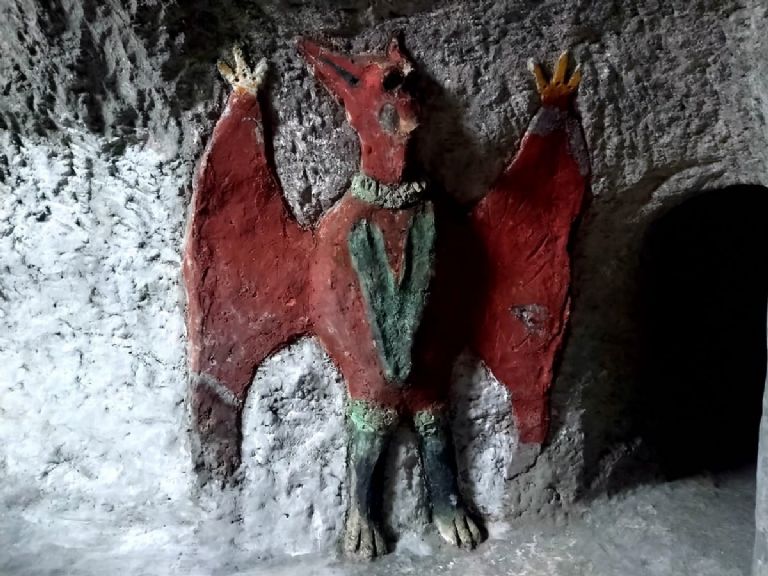 Explicó que al recorrer las cavernas uno puede observar las efigies de Gaspar, Melchor y Baltasar talladas en piedra, como una manera de que las tres deidades lo protegieran durante su jornada de trabajo, les hizo un altar, las decoró y pintó, hasta la fecha la pintura es original.