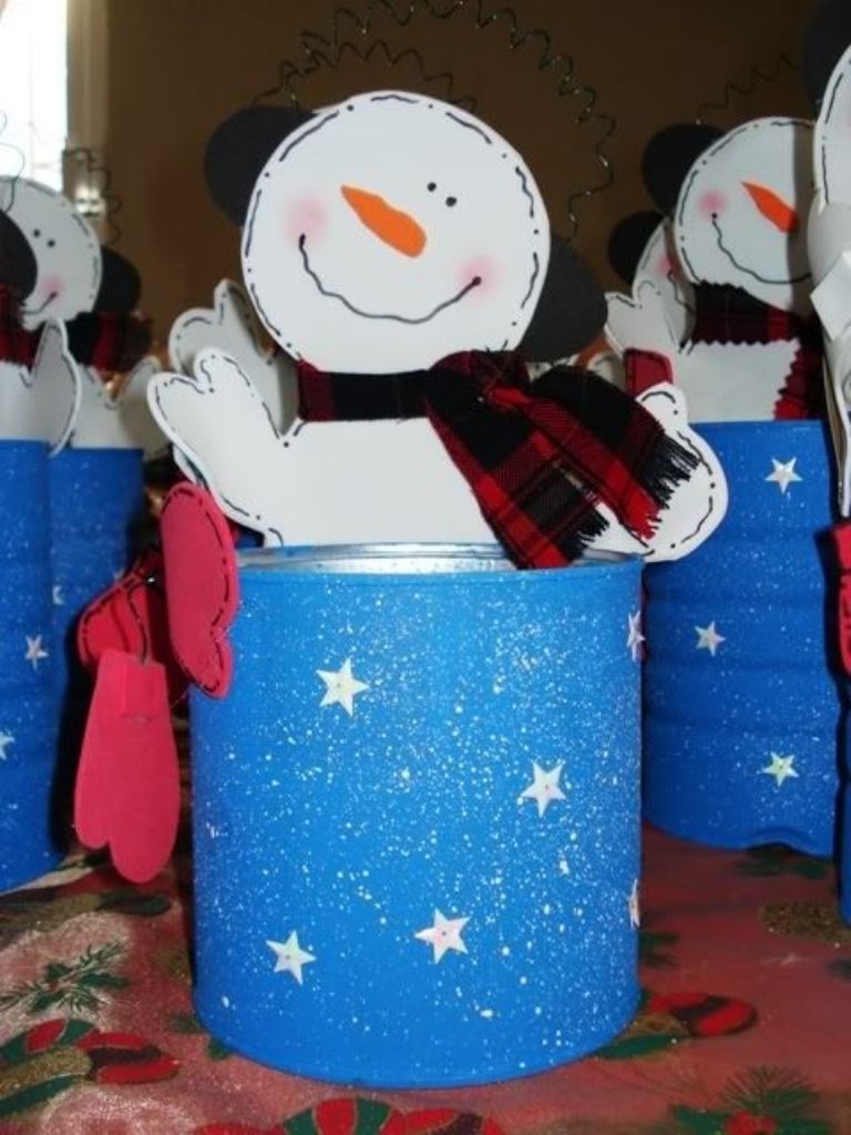 Con solo una lata de leche en polvo o para preparar malteadas de chocolate puedes crear un bonito dulcero en forma de muñeco de nieve para regalar durante las fiestas navideñas.