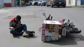 Automovilista no respeta el alto y choca a un repartidor de pizza en Mérida