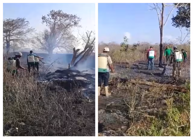 Brigadistas de Protección Civil Municipal de Buctzotz trabajan para controlar un incendio de gran magnitud que se extendió en una superficie de 15 hectáreas y que se originó en las unidades ganaderas propiedad de Ariel M. S. de 72 años. A su paso, el fuego causó daños en los potreros, alambrados, sistemas de riego, pastizales.