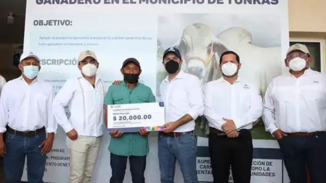 Mauricio Vila, gobernador de Yucatán, más allá de hacer entrega de apoyo monetario y de materiales para los productores ganaderos, también distribuyó plantas de achiote e inauguró el Instituto Municipal de la Mujer en la localidad de Tunkás.