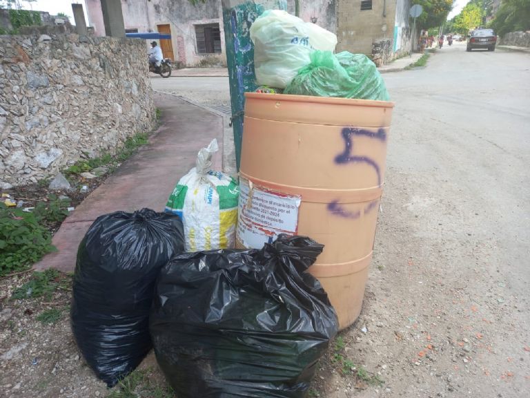 Doña María Pool, del Centro, menciona que los depósitos habilitados son insuficientes, rebosan de bolsas llenas basura y cuando los camiones que recogen se atrasan se genera un mal olor; esto ha provocado que muchos colonos cuelguen sus bolsas de basura en los muros de sus casas, donde el viento y animales de la calle suelen romperlas.