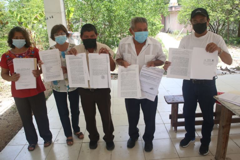 Elsy Martínez Mex, Rosario Martín Mex y Jorge Martínez Estrada exhibieron las pruebas documentales que confirman la propiedad de una hectárea cada uno de ellos y también copia de las denuncias que promovieron ante la Fiscalía.